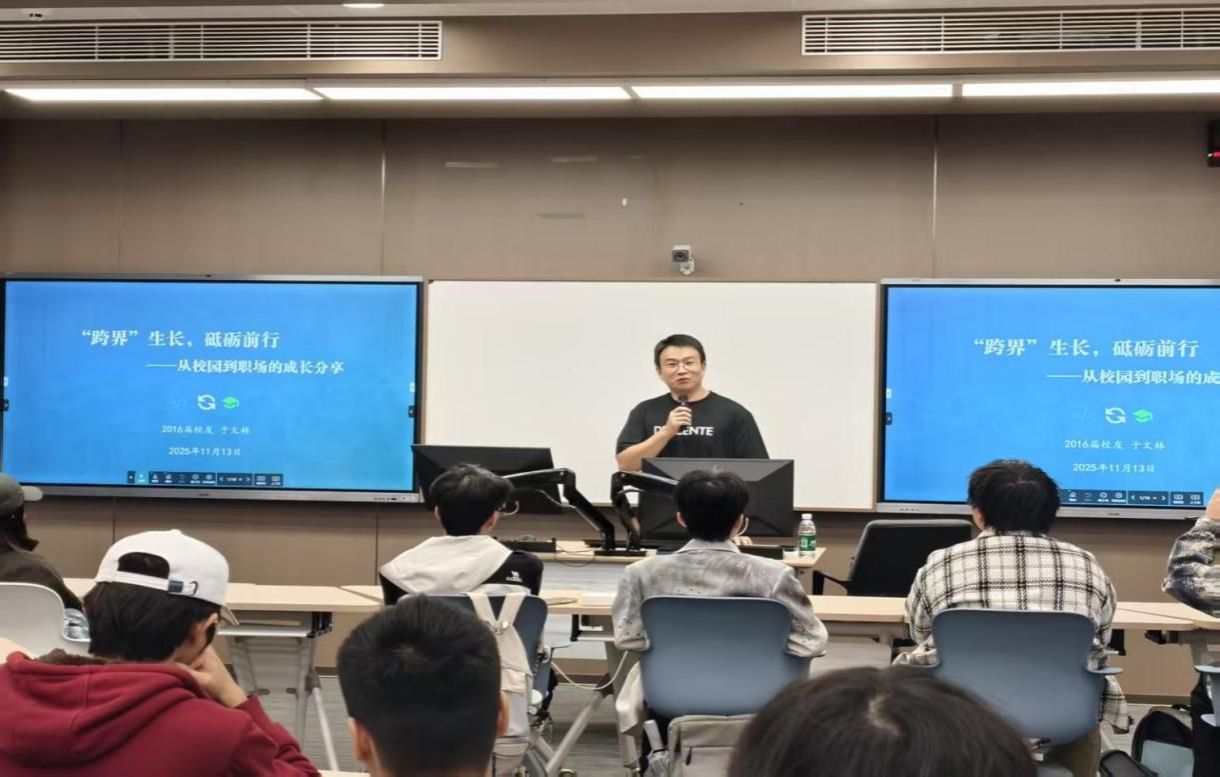 活动特邀2016届优秀校友于文林分享成长经验。于文林首先结合自身从计算机科学与技术专业跨界考研至社会医学与卫生事业管理专业的学习经历,分享了以“扎实专业根基 + 开放跨界思维”为核心的成长心得,阐述了专业能力为“基石”、跨界思维为“翅膀”的深刻体悟。在互动问答环节,同学们就跨专业考研、职业选择等困惑踊跃提问,于文林均给予了细致解答,现场气氛热烈。