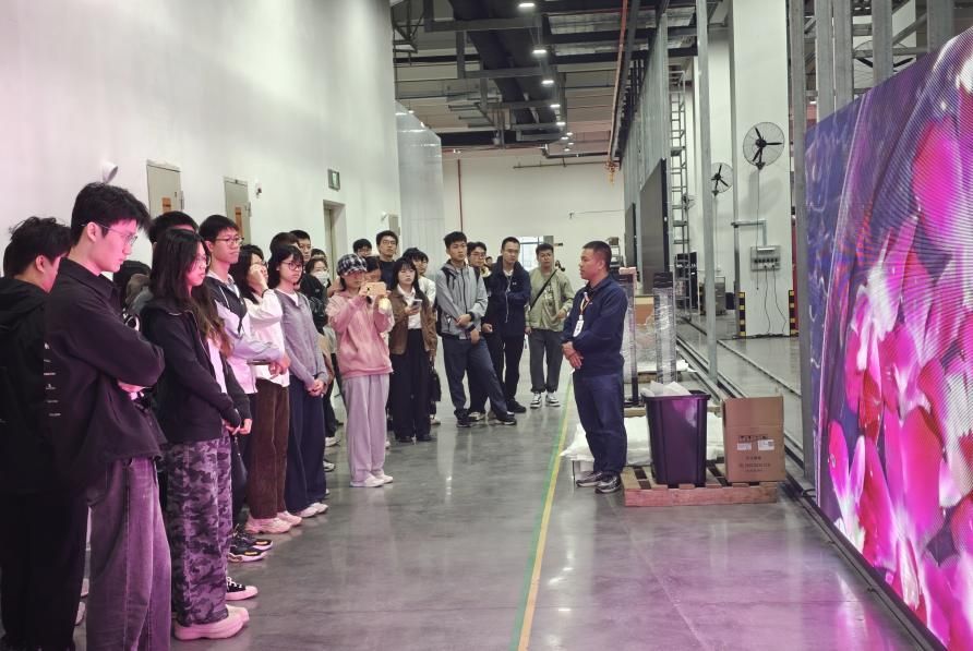 广东元亨光电有限责任公司作为国家级专精特新“小巨人”企业,专注于LED超高清显示产品的研发与制造,其产品在智慧医疗、城市光影、指挥中心等领域具有广泛应用,是医工交叉领域的高新技术代表企业之一。活动分为实地参观和座谈交流两个环节。在参观过程中,学生们走进LED屏幕智能化生产车间,近距离观摩先进制造流程,并与企业技术骨干现场交流,直观了解行业技术前沿与岗位工作内容。座谈环节中,公司人力资源部经理韩晓宇系统介绍了企业发展情况、人才招聘计划及员工培养体系,同学们围绕岗位要求、能力准备、职业发展等积极提问,并现场投递简历,交流气氛热烈。