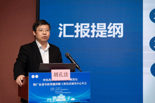 开幕式结束后,主旨报告环节顺利开展。南京中医药大学副校长胡孔法、中医药广东省实验室副主任周华分别作专题报告。胡孔法聚焦中医药大数据融合应用,阐述了数据采集标准、存储架构及分析模型构建思路,分享了团队在临床数据挖掘、药物研发数据整合的实践成果,提出大数据驱动中医药智能化发展的创新路径。周华以“人工智能和自动化技术赋能中药研发——设计与实践”为主题,重点分析了两种技术融合赋能中药研发的重要价值,为相关技术的产业化应用提供新思路。两位专家的报告为后续分论坛研讨奠定了坚实基础。