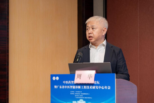 广东省中医药管理局规财人事处调研员李新发表致辞。李新指出,中医药智能化是推动中医药传承创新发展的关键抓手,是实现中医药高质量发展的重要路径,希望以本次论坛为契机,深化政产学研用协同创新,助力广东建设中医药强省。